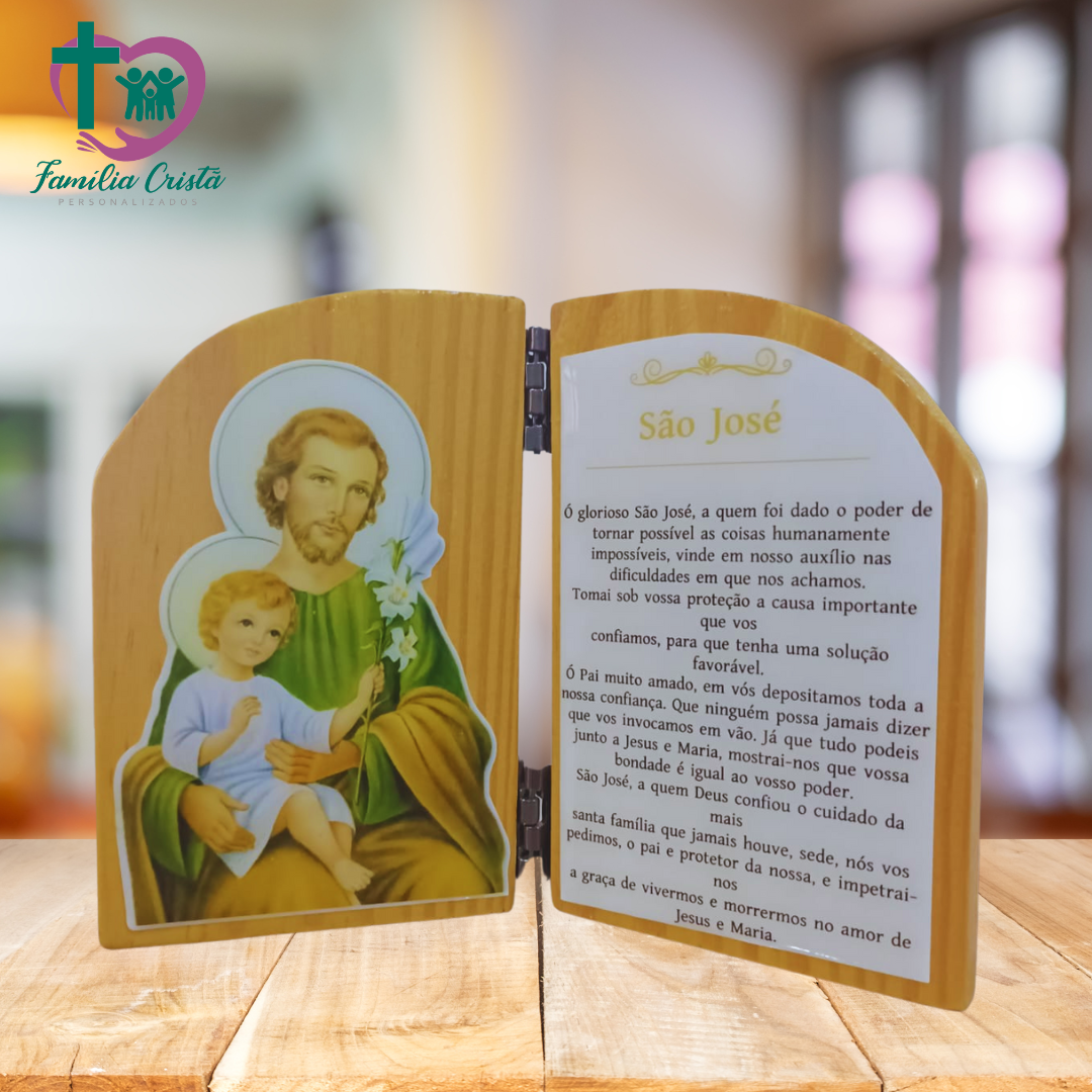 Lindo oratório de madeira, imagem em vinil de alta qualidade e acabamento em resina.