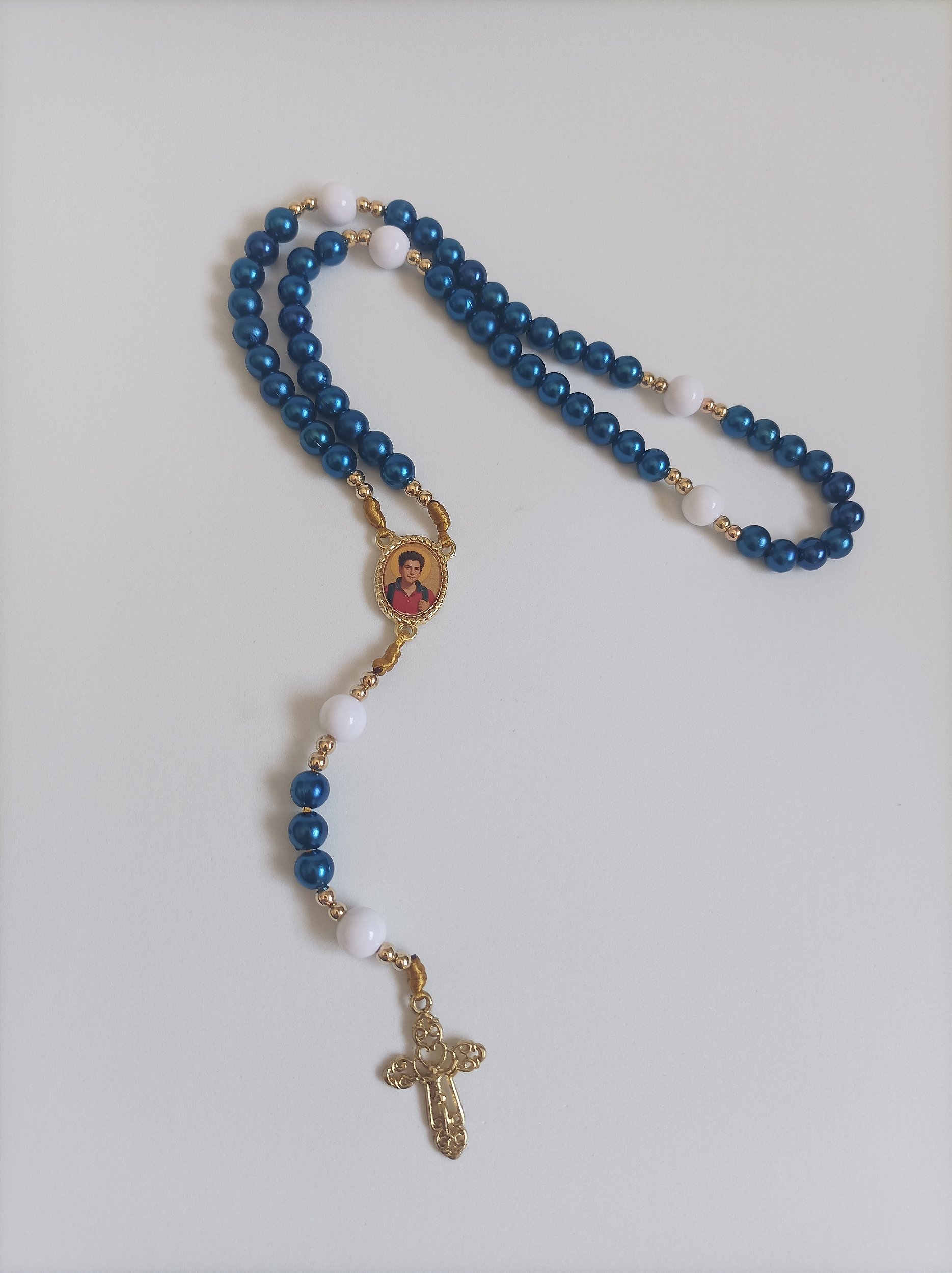 Terço personalizado com foto no entremeio.