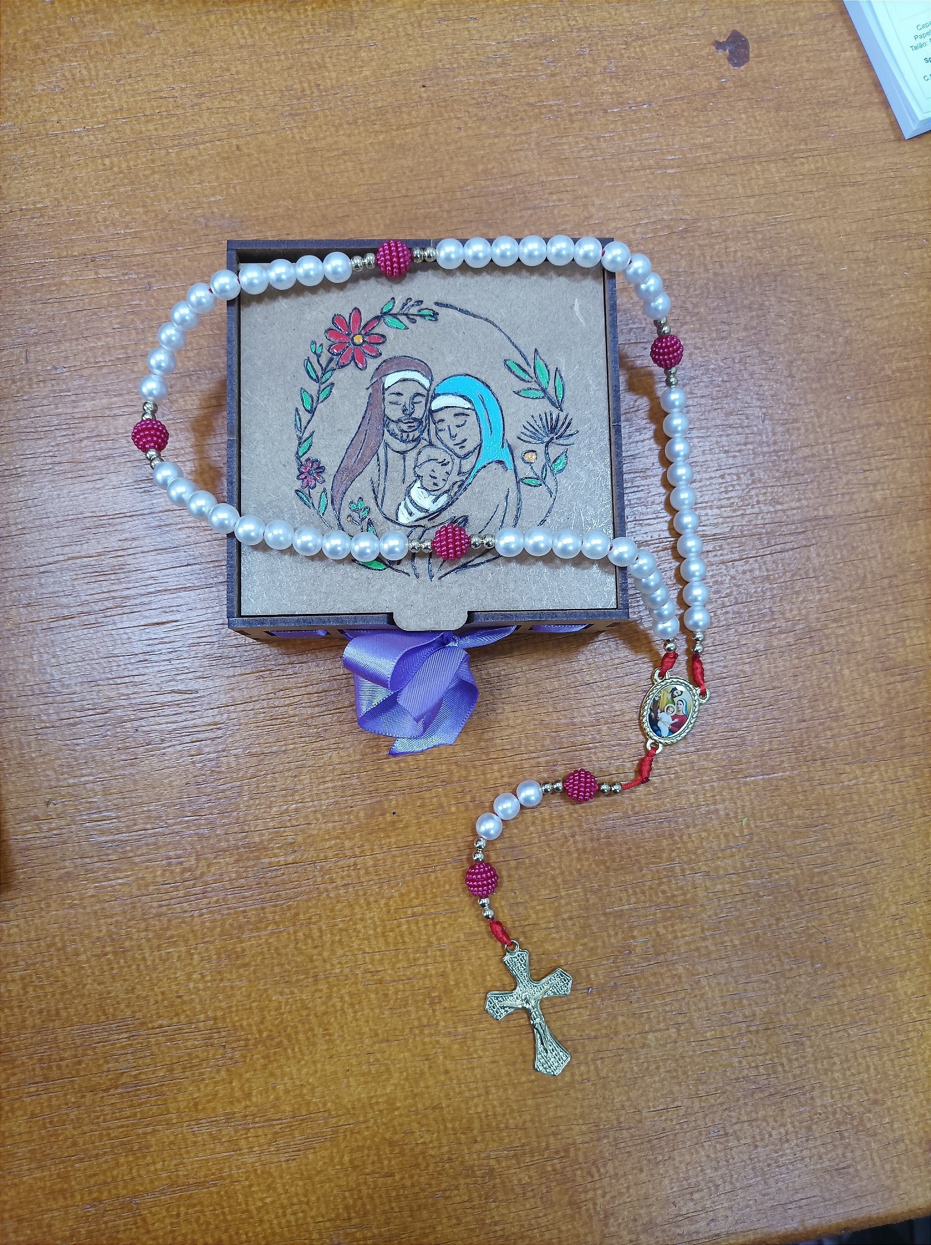 Terço com entremeio combinando com a estampa da caixa porta terço.